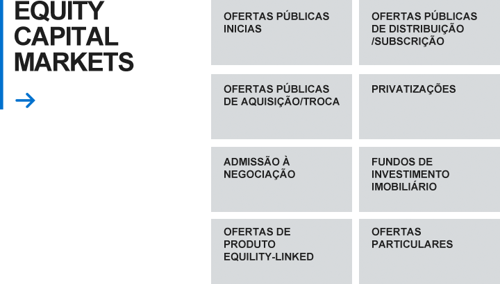 - O CaixaBI é líder em operações no Mercado de Capitais de Ações em Portugal tendo atuado como Coordenador Global e Bookrunner das principais operações que tiveram lugar nos últimos anos.